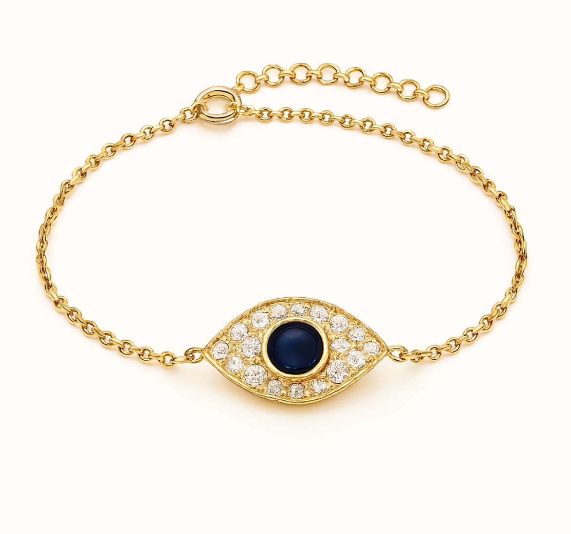צמיד עין בעיצוב מוקפד מזהב 0.30 קראט 14K, משובץ יהלומים נוצצים ליצירת ברק מרשים ועדין.
