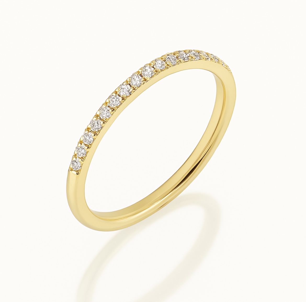 טבעת שורה קלאסית מזהב 14K, משובצת יהלומים בשיבוץ רציף ליצירת מראה אלגנטי ומלא ברק.