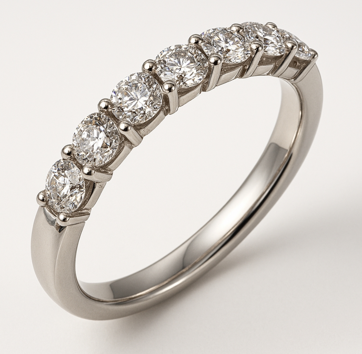 טבעת שורה קלאסית ועדינה מזהב 14 קראט עם יהלומים נוצצים בשיבוץ מוקפד ונקי. עיצוב אלגנטי שמתאים לשימוש יומיומי או לאירועים מיוחדים, תכשיט שכל אישה תשמח לענוד.