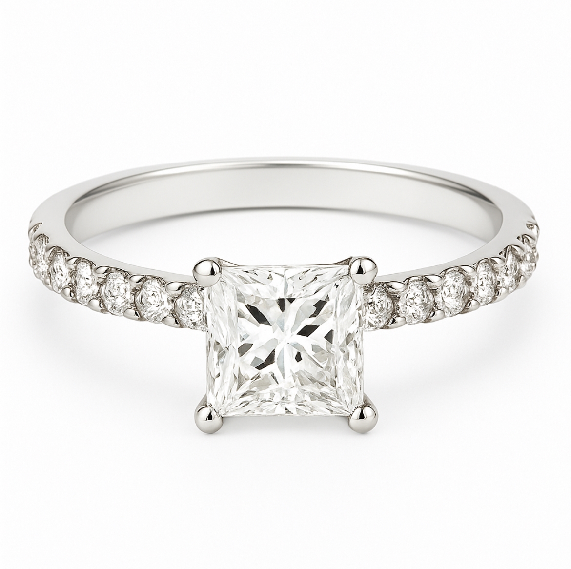 השיבוץ בצדדים מדגיש את הברק והיוקרה של הטבעת, ומעניק מראה נוצץ, אלגנטי ונצחי.