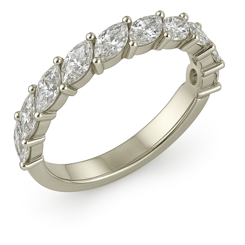 טבעת מוקפת מרקיזות מזהב 14 קראט עם יהלומים נוצצים. עיצוב אלגנטי ומודרני עם נוכחות מרשימה, מושלם כמתנה או כתכשיט הצהרה יוקרתי.