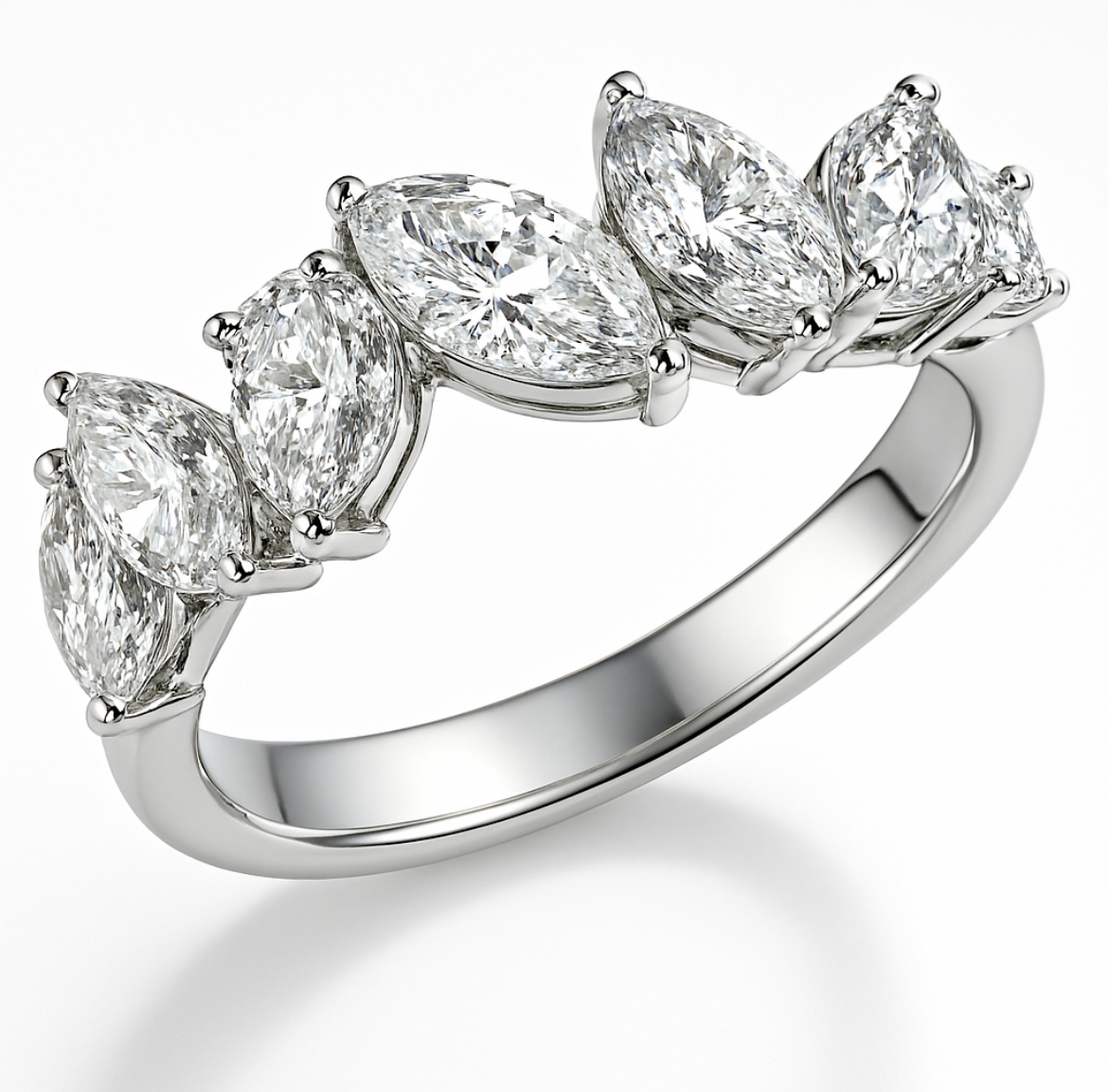 טבעת זהב 14 קראט יוקרתית וייחודית עם יהלומים בחיתוך מרקיזה נוצץ. עיצוב אלגנטי ומוארך שמושך את העין ומוסיף נוכחות יוקרתית לכל מראה.