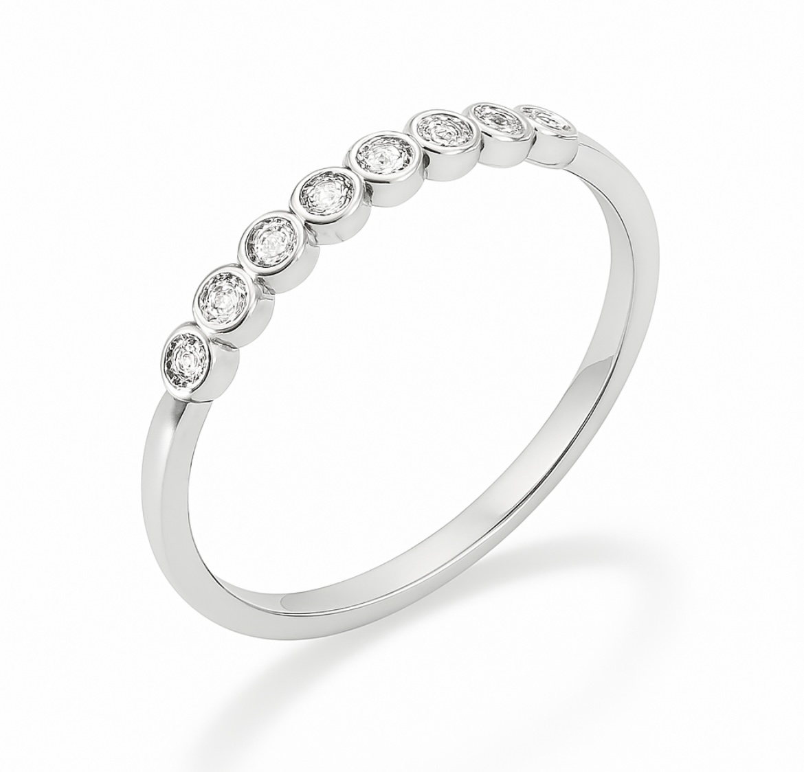 טבעת שורה עדינה ואלגנטית, עשויה זהב 14K, משובצת ב־יהלומי מעבדה איכותיים במשקל כולל של 0.28 קראט.