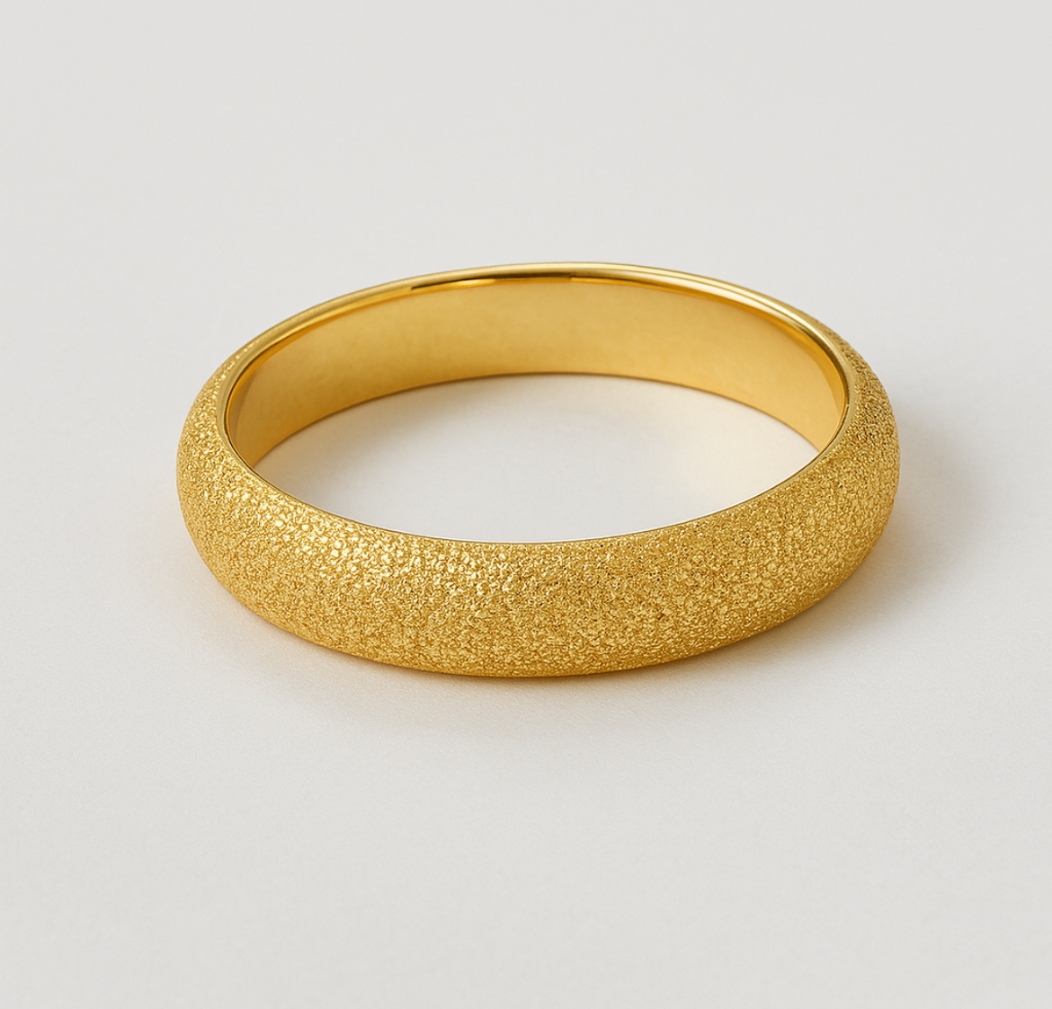 טבעת זהב 14 קראט דקה עם טקסטורה מנצנצת ייחודית, טבעת נישואין או מתנה מושלמת עם נגיעה עדינה וזוהרת, עיצוב קלאסי עם נגיעות מודרניות.
