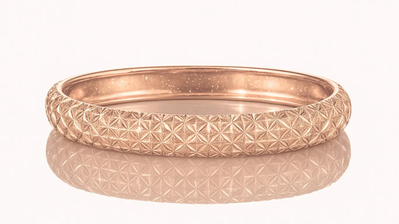 טבעת זהב 14 קראט דקה ועדינה עם טקסטורה כוכבית משובצת לאורך כל הטבעת, טבעת נישואין או טבעת יוקרה לנשים בעיצוב ייחודי ונשי.