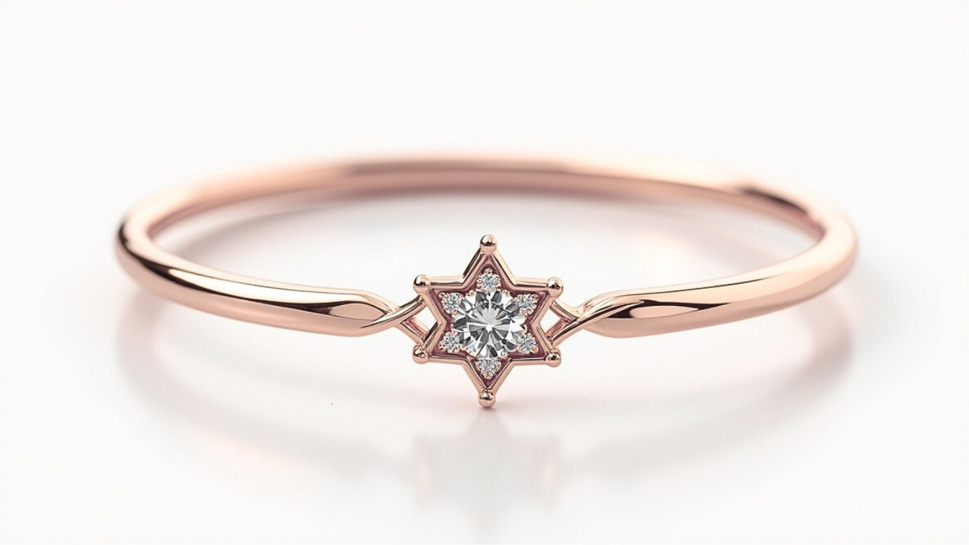 צמיד זהב 14 קראט בעיצוב עדין עם כוכב משובץ יהלום מרכזי ויהלומים קטנים מסביב. צמיד דק, נשי ויוקרתי שמתאים להשלמת מראה אלגנטי ביום יום או באירועים מיוחדים. תכשיט עם נוכחות שקטה וזוהר טבעי.