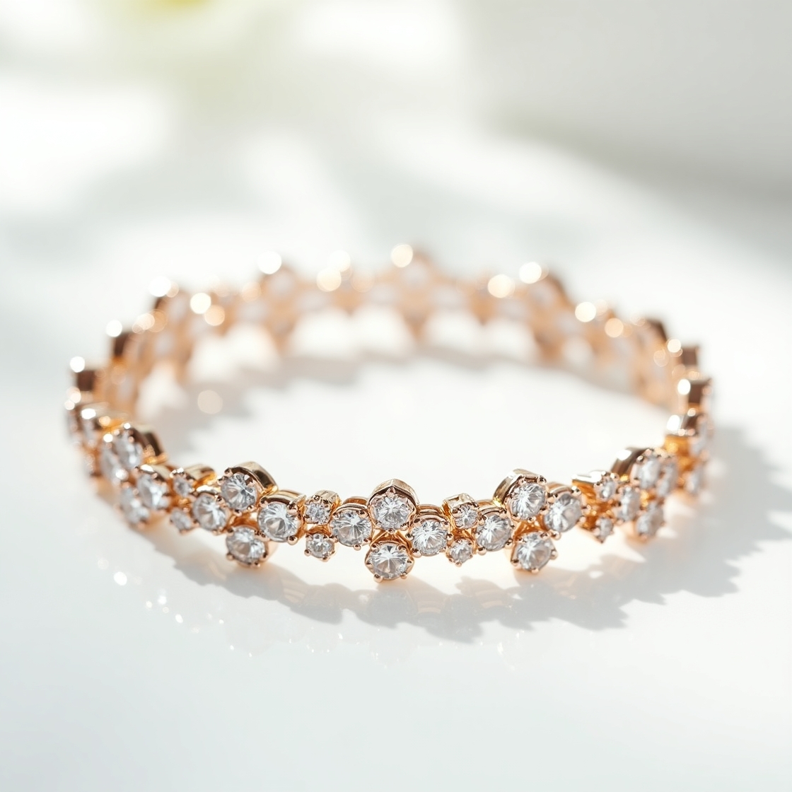 הצמיד "פרחוני" מבית היוקרה, משלב עיצוב נשי ועדין עם יהלומים מנצנצים בגדלים שונים, המעוצבים בצורה פרחונית על זהב רוז 18 קראט. תכשיט זה הוא בחירה מושלמת למי שמחפשת להוסיף נגיעה של זוהר ורוך למראה היומיומי, וכולל כל פרט שצריך כדי לשדר יוקרה ואלגנטיות.